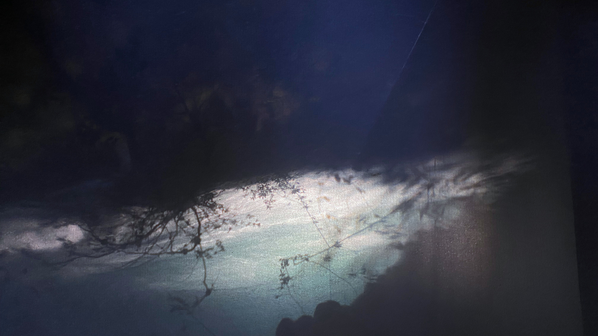 Por una parte, una dimensión visual, construida a partir de registros realizados con una cámara oscura estenopédica, diseñada y construida por la artista. A través de este dispositivo, se capturaron imágenes del río que se alejan del registro documental, proponiendo una mirada más poética y onírica del paisaje. Estas imágenes buscan abstraer el río de su representación habitual, intentando aproximarse a su esencia y a una temporalidad más sensible e intuitiva.